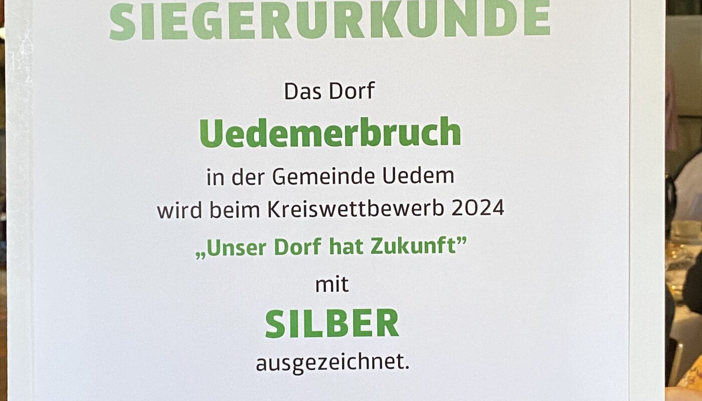 Am Freitag, den 13.9.24 wurden Vertreter und Vertreterinnen aus Uedemerbruch zur Preisverleihung nach Kleve eingeladen! Wir wurden mit Silber ausgezeichnet. Als Zusatzpreis wurde unsere Bücherei ausgezeichnet mit einem Sonderpreis! Wie hoch genau die Preise dotiert sind, wird uns bald mitgeteilt.