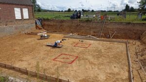 • Die Bodenplatte ist drin – jetzt wird sie begossen!07/09/2023